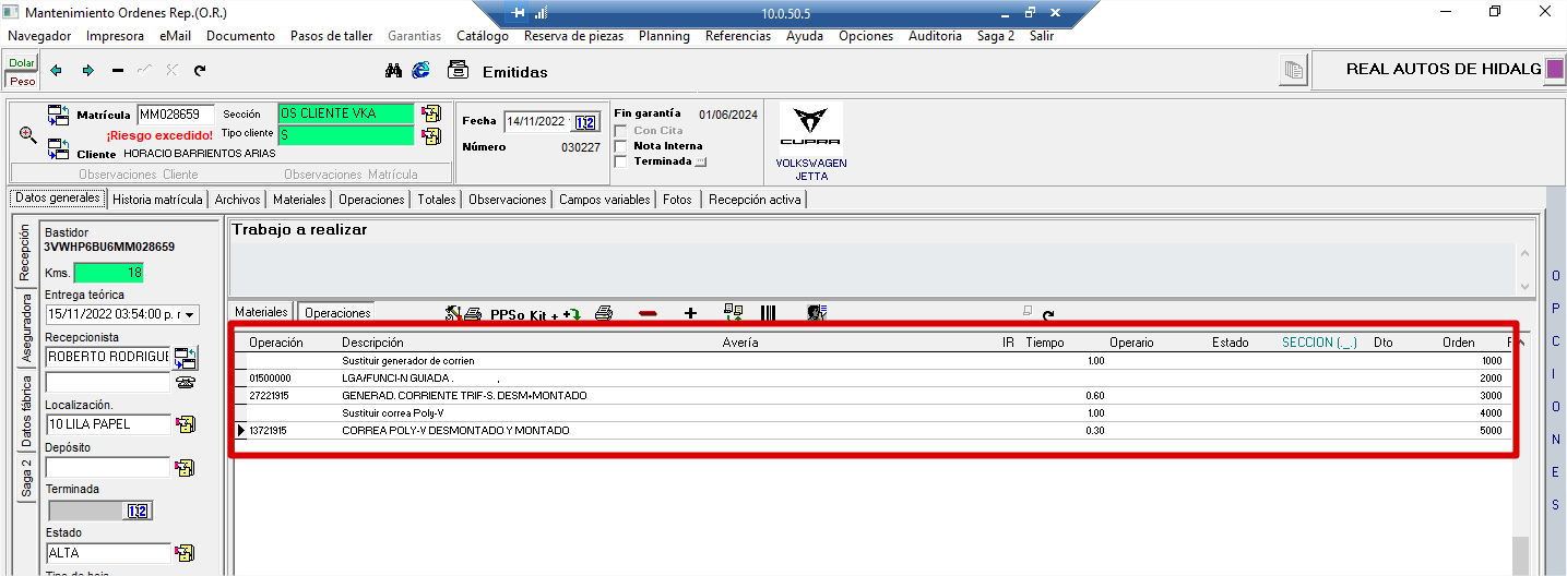 Ya dentro del DMS se podrá seguir con el proceso de la orden de servicio.