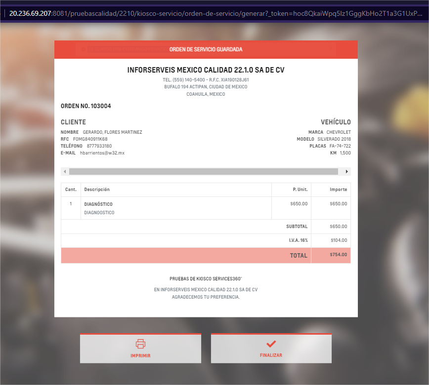 Se realizó un ajuste en las diferentes pantallas del Kiosco, esto para que los botones no se desfacen dentro de la pantalla, en la versión anterior, al realizar la búsqueda de la matrícula y la creación de la recepción, los botones quedaban muy abajo y tenías que desplazarte hacia abajo con la barra lateral del explorador. En esta versión se hace el ajuste a las pantallas para que no tengan que desplazarse en las diferentes opciones.
