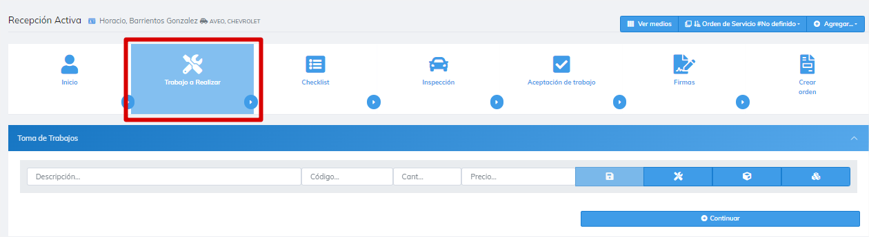 Al continuar, se realiza el cambio de propietario del vehículo y en la recepción.