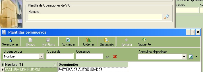 - Seleccione la plantilla de Operación por Ej. VEHICULOS SEMINUEVOS