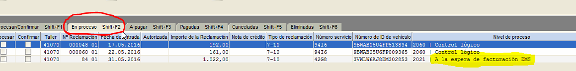 Solo si el nivel de proceso de la reclamación es, a la espera de facturación DMS podemos continuar de lo contrario deberá intervenir el usuario para ver si es necesaria alguna corrección.