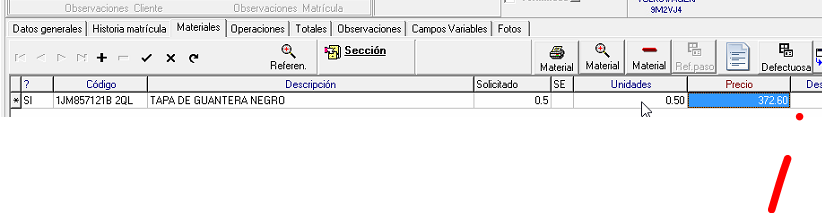 Desde que se abre la orden se debe hacer la petición a Saga de la cortesía, para ello enviamos la orden de servicio aún sin cargar Operaciones ni refacciones.