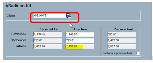 En la orden seleccinamos el Kit con el codigo correcto validando los totales.