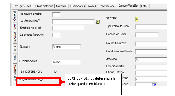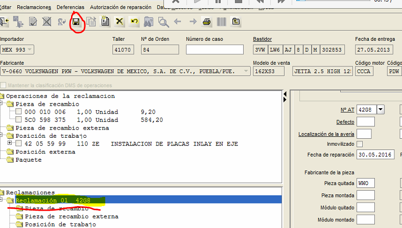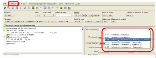 Aquí deberán ingresar a la (S) reclamaciones cada reclamación es una avería así que si se crearon más de una avería tendremos varias reclamaciones, en cada una se deberá ingresar y grabar el código del mecánico en la pestaña de Mano de Obra.