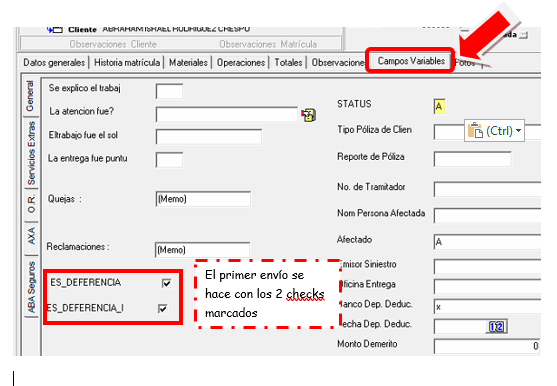 Ingresamos en modo Ficha y nos posicionamos en la pestaña de Campos Variables, aquí debemos desactivar el chek en el campo de ES DEFERNCIA IN.