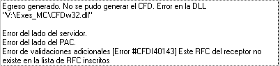 Si el error mostrado en la columna Resultado del proceso no puede ser corregido por el usuario, será necesario comunicarse con el departamento de soporte técnico para su validación y generación.