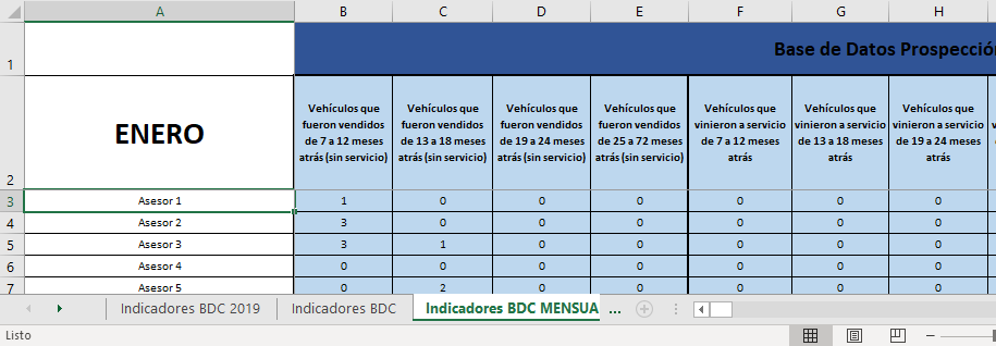 Como se observa, en cada hoja se obtiene información a detalle, de lo que cada asesor ha capturado dentro del sistema, a través del encargado de BDC, generando estrategias en Llamadas Salientes.